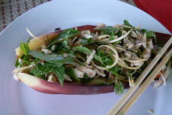 Salate aus Bananenblüten und Gemüsereis